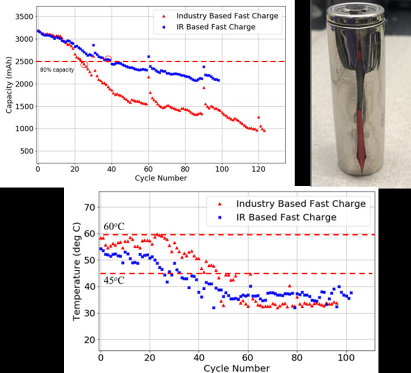 電氣和計算機工程系教授Mihri Ozkan與Marlan and Rosemary Bourns工程學(xué)院機械工程系教授Cengiz Ozkan領(lǐng)導(dǎo)了一個小組,采用高速公路沿路安裝的快速充電樁為特斯拉汽車中的松下NCR 18650B圓柱形鋰離子電池充電。