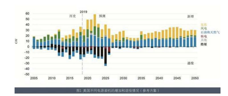 此前,EIA發(fā)布了《2020年度美國能源展望》報告,預(yù)測2020-2050年不同電源裝機的增加和退役情況。