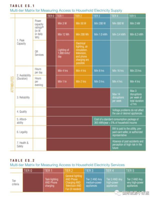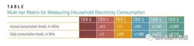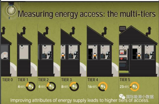 為此,世界銀行提出了全球人人用電的五個(gè)層次(無電狀況可視為“層次0”):