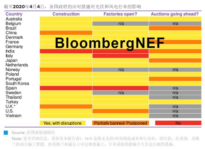 疫情沖擊下,全球各地紛紛采取封鎖措施,可再生能源企業(yè)和項(xiàng)目也難逃“疫”劫。在本報(bào)告中,彭博新能源財(cái)經(jīng)對(duì)風(fēng)電光伏制造業(yè)、項(xiàng)目建設(shè)及企業(yè)和消費(fèi)者信心情況進(jìn)行了總結(jié)。