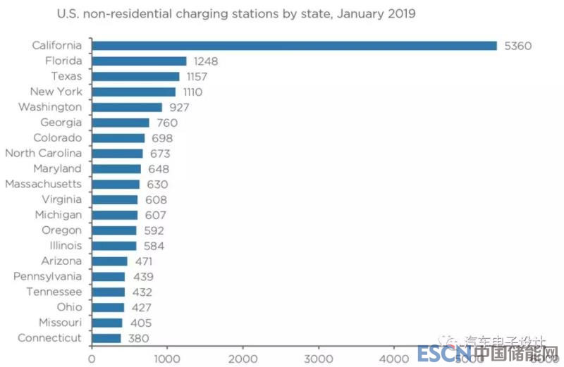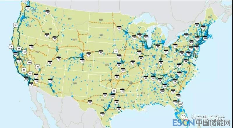 美國(guó)的充電樁分布