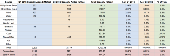 根據(jù)GTMResearch統(tǒng)計(jì)數(shù)據(jù)顯示,今年一季度,美國(guó)新增電力裝機(jī)容量99%來(lái)自可再生能源,其中,64%來(lái)自太陽(yáng)能。