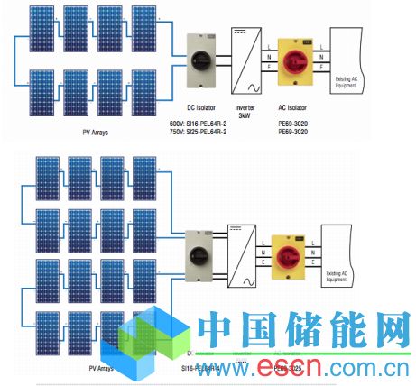 近日,IMO也積極研發(fā)一種有直流/交流雙隔離消防用緊急制動聯(lián)動開關(guān),可以切斷直流1000V,直流電流從12A的民用光伏屋頂系統(tǒng)到450A的電站級系統(tǒng)。這種直流開關(guān)通過單獨的線纜與交流開關(guān)相連,當交流電斷開時,直流側(cè)的繼電器會因交流電信號丟失,而自動斷開直流側(cè)電路,起到直流/交流電路雙隔離的作用。