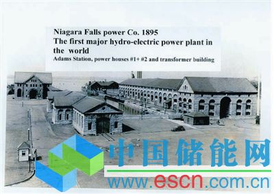 1895年,美國建成了裝設(shè)有10臺當(dāng)時額定功率最大的發(fā)電機組(3700千瓦)、第一次采用高電壓交流發(fā)電機、第一次將最大電力負(fù)荷采用交流高壓輸電傳輸?shù)?0公里外的大城市,這些使亞當(dāng)斯水電站成為當(dāng)時毫無爭議的美國和世界最大的水電站。