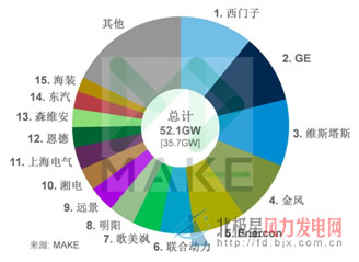 中國儲能網(wǎng)訊:在國際知名風(fēng)能研究機(jī)構(gòu)MAKE日前公布的《2014年全球整機(jī)商市場份額分析》中,以西門子和GE為代表的跨行業(yè)集團(tuán)名列前茅。