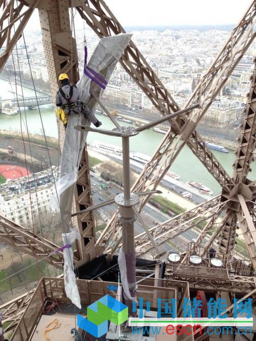 中國儲能網(wǎng)訊:近三十年都未曾大規(guī)模升級的埃菲爾鐵塔如今進行了一番現(xiàn)代化翻新,安裝了LED燈、太陽能電池板和兩臺定制的VisionAIR5風(fēng)力渦輪機。這兩臺渦輪機由紐約可再生能源公司希翼新興能源公司(UGE)設(shè)計,每年可以產(chǎn)生1萬千瓦的能量,足以供應(yīng)鐵塔一樓(商用接待每年7百萬旅客)的用電量。