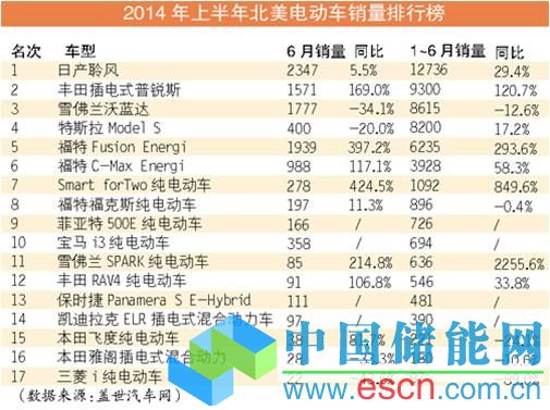 與此同時,2014年1~6月北美電動車暢銷榜也已經(jīng)出爐,上半年累計(jì)銷量排名第一的是日產(chǎn)聆風(fēng),1~6月共售出12736輛;增幅最大的是雪佛蘭SPARK純電動車,1~6月同比增幅2255.6%。