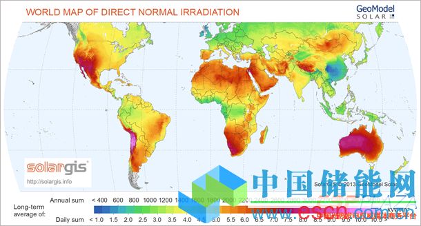 圖:全球DNI輻照圖