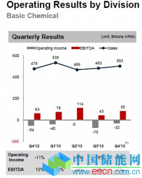 銷售額的提高及穩(wěn)定的價格致使BasicChemical部門運(yùn)營虧損創(chuàng)紀(jì)錄為320億韓元(3000萬美元),而2013年第三季度運(yùn)營虧損為751億韓元(7040萬美元)。