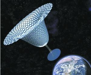 根據(jù)曼金斯的設(shè)想,這一系統(tǒng)由數(shù)千個薄而彎曲的類似鏡子的組件構(gòu)成,可以在太空中自由移動,從而確保能夠采集盡可能多的能量。同時,發(fā)電衛(wèi)星內(nèi)部鑲嵌著光電板,能夠?qū)⑻柲苻D(zhuǎn)換成為微波。之后微波從雞尾酒杯狀衛(wèi)星底部釋放,傳輸至地面的發(fā)電站,后者接收后將微波轉(zhuǎn)換成電,而后傳輸給消費者。