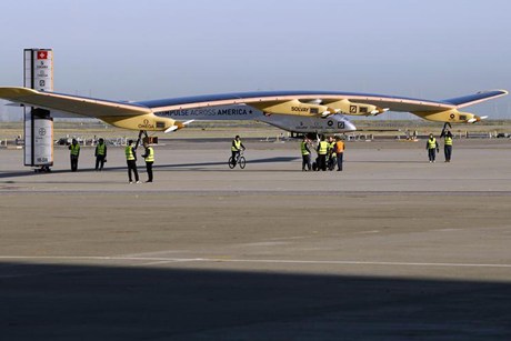 今年2月28日,拆散成10個(gè)部分的“太陽(yáng)能驅(qū)動(dòng)號(hào)”從瑞士運(yùn)抵舊金山,工程師們?cè)谀铺貦C(jī)場(chǎng)完成了安裝,4月2日進(jìn)行第一次試飛。預(yù)計(jì)5月初從舊金山出發(fā)途徑鳳凰城、達(dá)拉斯、華盛頓DC,大約7月抵達(dá)紐約肯尼迪國(guó)際機(jī)場(chǎng)。