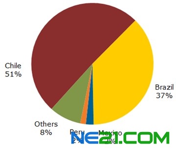 受益于凈電價(jià)計(jì)量、可再生能源配額(RPS)和其它政策,墨西哥、智利和巴西成為該光伏市場(chǎng)的領(lǐng)導(dǎo)者,預(yù)計(jì)到2017年三個(gè)國(guó)家占該地區(qū)總光伏需求的70%左右。