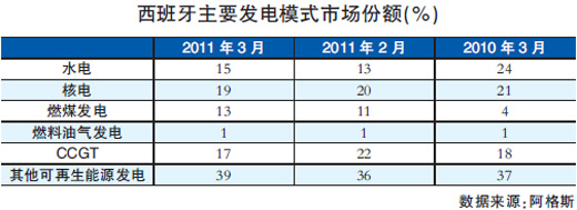 阿格斯同時(shí)指出,與2010年同期相比,今年西班牙的核電和水電的發(fā)電量則分別有所減少。其中,水電下降幅度較大,達(dá)到36%。3月,日核危機(jī)爆發(fā)后,全球核電均受到牽連,西班牙也不例外,同比2010年核電發(fā)電量下降了11%。另有采用聯(lián)合循環(huán)燃?xì)鉁u輪機(jī)(CCGT)發(fā)電的天然氣電廠發(fā)電量今年3月也比2月大幅下降了17%,不過(guò)這一數(shù)字同比去年僅下降了2%。