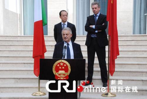意大利當(dāng)?shù)貢r(shí)間10日上午,意大利環(huán)境部長科里尼在中國駐意大利使館向丁偉大使贈(zèng)送了一輛雪鐵龍電動(dòng)車,旨在推動(dòng)使館的綠色出行理念。