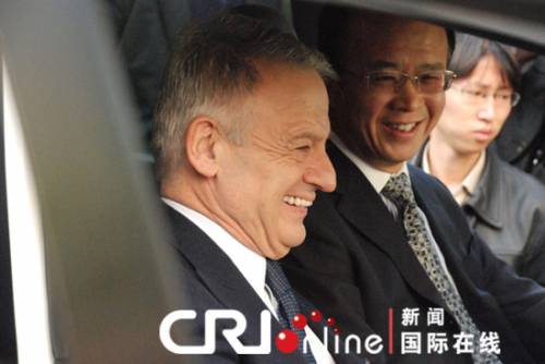 科里尼部長向丁偉大使轉(zhuǎn)交雪鐵龍電動(dòng)汽車鑰匙