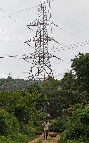 中國儲能網(wǎng)訊:驚人的失敗:今年夏天,印度出現(xiàn)大范圍停電事故影響了約6.2億人。圖中是斷電時,一名男子從高哈蒂市郊的輸電線旁走過。(圖片來源:AP | Anupam Nath)