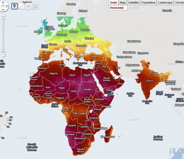 中國儲能網(wǎng)訊:近日GeoModelSolar發(fā)布了南非、萊索托以及斯威士蘭的新太陽能分布圖,圖中顯示了非洲大陸的太陽能直接輻射狀況。GeoModelSolar管理總監(jiān)MarcelSuri表示:“這些太陽能分布圖的獨特性反應在其250米的極高空間分辨率。至于時間分辨率,基礎太陽能數(shù)據(jù)保存有18年的歷史數(shù)據(jù)(1994至今),時間步長最高可達到15分鐘。