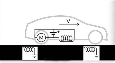 充電系統(tǒng)的工作原理是將一系列接通電流的線圈埋入高速路面下,在汽車(chē)底部裝上感應(yīng)線圈,當(dāng)汽車(chē)通過(guò)該高速路時(shí)就會(huì)共振,產(chǎn)生磁場(chǎng)將電力持續(xù)不斷地傳輸給電池。