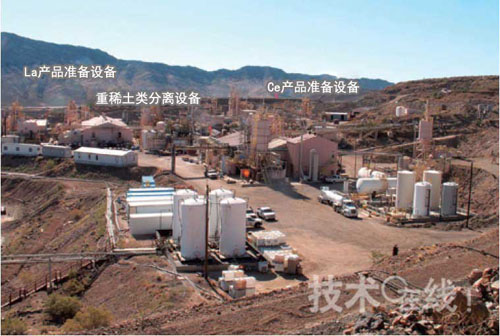 通過懸掛著美國國旗和Molycorp公司旗幟的入口后,處理稀土原礦石的老式設(shè)備便出現(xiàn)在眼前(圖2)。該設(shè)備目前仍在用過去存儲的礦石生產(chǎn)稀土。