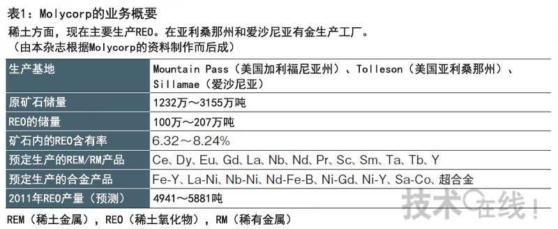 在Project Phoenix中,2008年成立并獲得新生的Molycorp計劃在利用原礦石提取稀土的工藝中采用新技術(shù),同時以不亞于中國的成本競爭力生產(chǎn)稀土 注1)。據(jù)Molycorp透露,不僅提供稀土材料,該公司還將利用稀土制造磁鐵等成品。