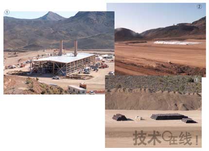 原來的設(shè)備在供電穩(wěn)定性上存在問題。新設(shè)備中引進(jìn)了利用天然氣發(fā)電的設(shè)備(①)。發(fā)電容量為49MW。新制造工藝會生成水分含量較少的尾礦膏體。將該膏體制成板狀,夾在塑料等中間保存(②)。③是夾有膏體的塑料和土。