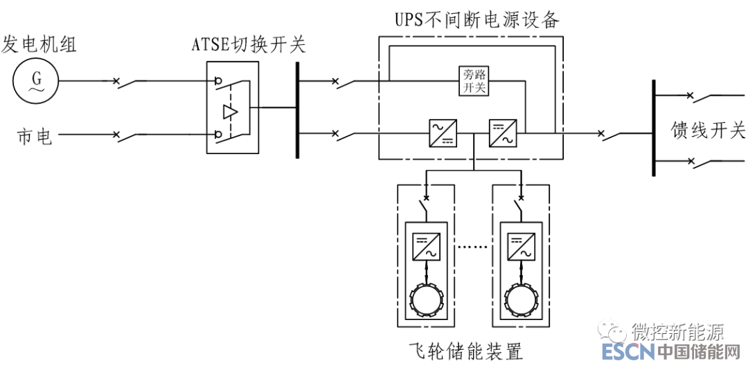 當(dāng)市電中斷或故障時(shí),飛輪儲(chǔ)能型UPS可實(shí)現(xiàn)毫秒級(jí)切換為重要負(fù)荷提供不間斷電源保障,同時(shí)ATSE自動(dòng)切換至柴油發(fā)電機(jī)組供電;