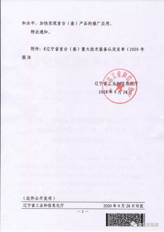 遼寧省2020年首臺(套)重大技術(shù)裝備認定名單