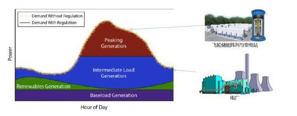 電廠將多余的發(fā)電量儲存在飛輪中,根據(jù)電網(wǎng)調(diào)度網(wǎng)絡(luò)自動化調(diào)度指令,在 0.1s~1s 內(nèi)對需求做出響應(yīng),一天內(nèi)飛輪儲能系統(tǒng)可反復(fù)儲能、釋能10K次以上,這樣電廠整體運行可以基本保持平穩(wěn),提高發(fā)電效率。