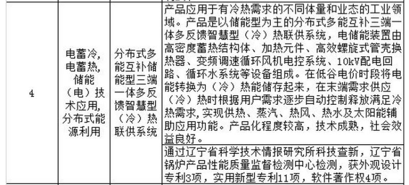 分布式多能互補儲能型三端一體多反饋智慧型(冷)熱聯(lián)供系統(tǒng):產品應用于有冷熱需求的不同體量和業(yè)態(tài)的工業(yè)領域。產品是以儲能型為主的分布式多能互補三端一體多反饋智慧型(冷)熱聯(lián)供系統(tǒng),電儲能裝置由高密度蓄熱結構體、加熱元件、高效螺旋式管殼換熱器、變頻調速循環(huán)風機電控系統(tǒng)、10kV配電回路、循環(huán)水系統(tǒng)等設備組成。在低谷電價時段將電能轉換為(冷)熱能儲存起來,在末端需求供應(冷)熱時根據用戶需求逐步自動控制釋放滿足冷熱需求,實現(xiàn)供熱、蒸汽、熱風、熱水及太陽能輔助應用功能。產品化程度較高,技術成熟,社會效益良好。