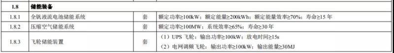 儲能裝備除了全釩液流電池儲能系統(tǒng)外,新增壓縮空氣儲能系統(tǒng)、飛輪儲能裝置。