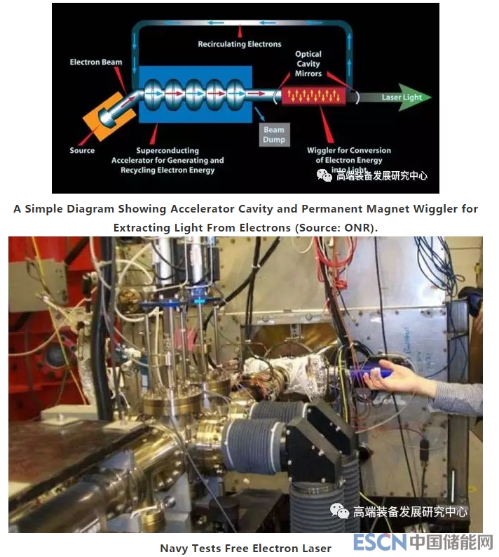 自由電子激光器(FEL)就是典型的的電子激光器,其原理是利用相對論電子束通過周期磁場將電子束的動能轉換為具備激光品質的高功率輻射能。FEL具有高功率、高效率、波長的大范圍調諧和超短脈沖的時間結構等一系列優(yōu)良特性,除自由電子激光器之外, 還沒有一種激光器能同時具備這些特點。在DEW平臺上,主要對FEL施加電力就可以實現(xiàn)無化學品無彈匣應用。但是,F(xiàn)EL必然需要大量的源功率才能在HEL水平下運行。