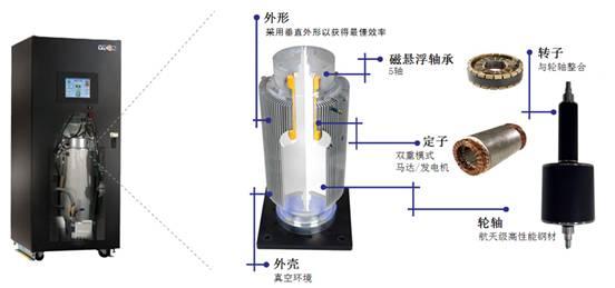 VDC飛輪儲能產品的核心技術包括五軸主動磁懸浮軸承及控制技術、高性能合金材料技術、高速永磁電動機/發(fā)電機技術和大功率電力電子變換技術,其主要組成部分如下圖所示: