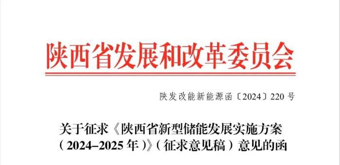 中國儲能網(wǎng)訊:近日,陜西發(fā)改委、能源局發(fā)布關(guān)于征求《陜西省新型儲能發(fā)展實施方案(2024-2025 年)》(征求意見稿)意見的函(以下簡稱“征求意見稿”)。