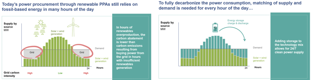 另一種工具是可再生能源的小時級核算,而 LDES 可以提供相應的靈活性、安全性和可靠性。目前,按年計算供需的按生產(chǎn)量付費的可再生能源購電協(xié)議僅實現(xiàn)了承購商實際用電量的 40-70% 脫碳,同時使承購商面臨市場價格波動風險。未來,隨著可再生能源在全球發(fā)電容量中所占份額越來越大,24/7 清潔 PPA 提供了一種更精確的供需匹配方式。
