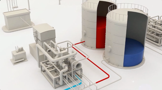 儲電的時候,電力驅(qū)動壓縮機(jī)壓縮空氣,電能轉(zhuǎn)換成壓縮空氣的勢能,這些壓縮后的空氣,輸送到地下密封存儲起來,也就完成了能量的存儲。在需要供電的時候,釋放出壓縮空氣,高壓的空氣經(jīng)過加熱,進(jìn)入膨脹機(jī),變成常壓的空氣,在此過程中帶動發(fā)電機(jī)發(fā)電,空氣的壓縮勢能也就轉(zhuǎn)化成了電能輸出。