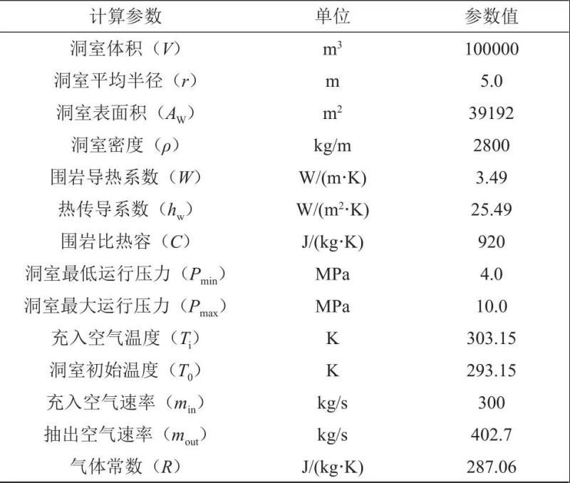 為全面了解壓氣儲(chǔ)能電站地下儲(chǔ)氣庫(kù)的儲(chǔ)能效率特征,以體積為10 萬(wàn)立方米、表面積為39192 m2某擬建花崗巖地下壓縮空氣試驗(yàn)庫(kù)為例,分析儲(chǔ)氣庫(kù)在循環(huán)條件下的儲(chǔ)能效率變化情況,相關(guān)計(jì)算參數(shù)見(jiàn)表3。計(jì)算運(yùn)行周期為30天。