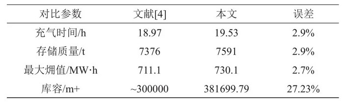 表2 不考慮氣體泄漏時(shí)儲(chǔ)氣庫(kù)庫(kù)容及壓縮空氣?值的對(duì)比