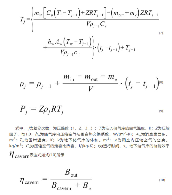 無(wú)論是地面儲(chǔ)氣罐,還是地下儲(chǔ)氣庫(kù),在壓氣儲(chǔ)能電站規(guī)劃和設(shè)計(jì)過(guò)程中,都需要根據(jù)電站裝機(jī)規(guī)模的大小準(zhǔn)確地計(jì)算儲(chǔ)氣裝置的儲(chǔ)能能力和體積大小,從而達(dá)到預(yù)定設(shè)計(jì)功率指標(biāo)。地下儲(chǔ)氣庫(kù)的儲(chǔ)能能力和效率計(jì)算過(guò)程相對(duì)復(fù)雜,其復(fù)雜性主要來(lái)自于CAES系統(tǒng)中儲(chǔ)氣庫(kù)洞室內(nèi)部壓縮空氣的動(dòng)態(tài)響應(yīng)和圍巖的耦合熱傳效應(yīng)的非恒定性及復(fù)雜性。此外,地下儲(chǔ)氣庫(kù)在運(yùn)行過(guò)程中不可避免會(huì)產(chǎn)生一定程度的壓縮空氣泄漏現(xiàn)象,從而造成相應(yīng)程度的儲(chǔ)能能量損失。因此,在評(píng)價(jià)儲(chǔ)氣庫(kù)儲(chǔ)能能力和確定儲(chǔ)氣庫(kù)容積時(shí),需要考慮上述因素的影響。