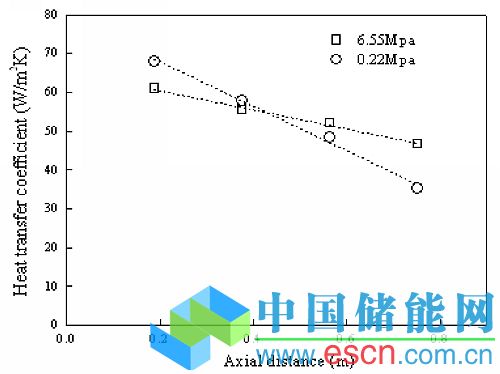 圖1 不同壓力下的入口距離對空氣-填充床相間傳熱系數(shù)的影響