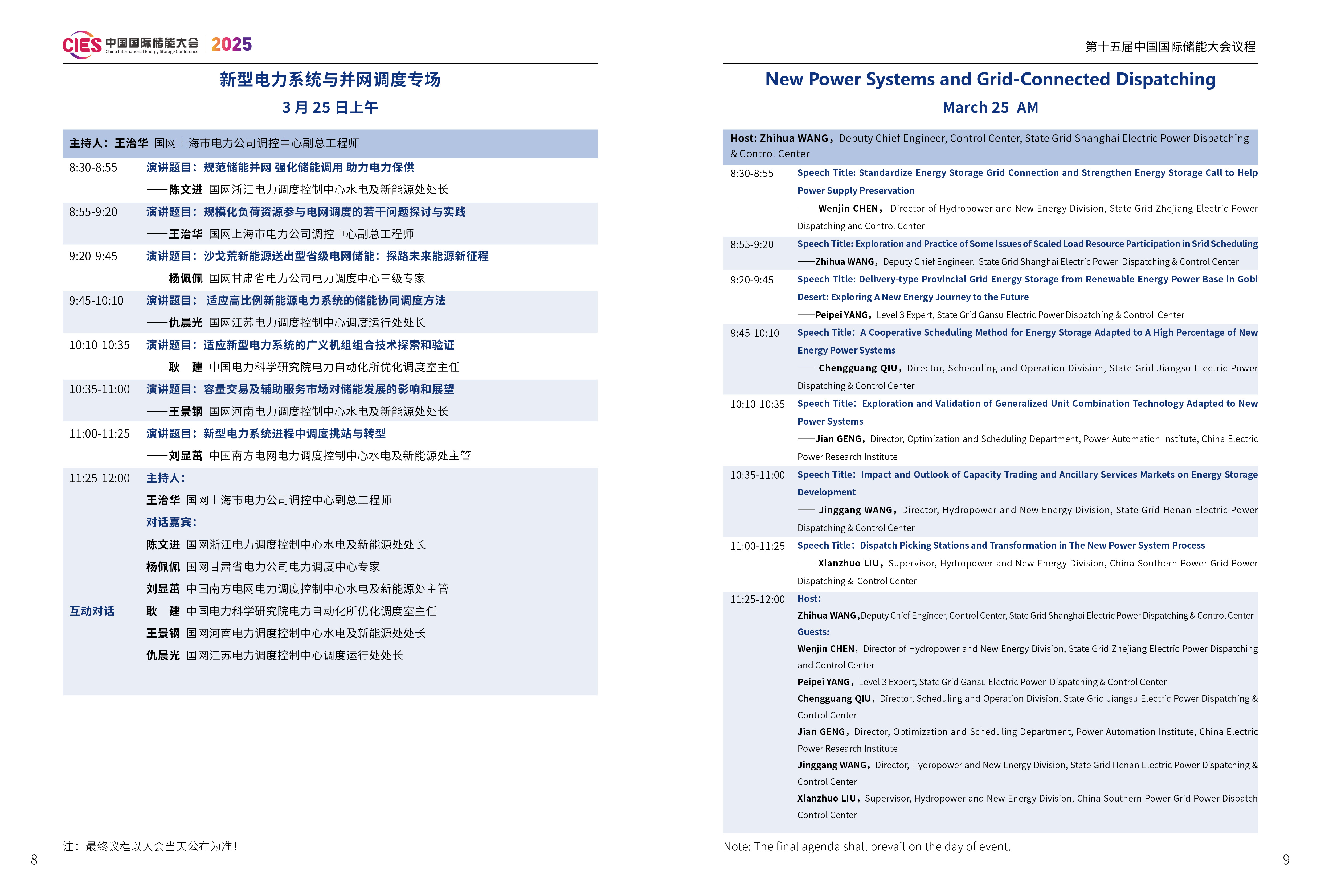 CIES2025儲能大會將設(shè)置:大會開幕式暨特邀院士專家報告、數(shù)智化配電網(wǎng)與新型儲能融合創(chuàng)新、新型電力系統(tǒng)與并網(wǎng)調(diào)度、新型儲能與新能源大基地協(xié)同發(fā)展、國際儲能、電力輔助服務(wù)、現(xiàn)貨交易及容量市場、工業(yè)綠色微電網(wǎng)、國家儲能標(biāo)準(zhǔn)宣貫、數(shù)智化新型儲能系統(tǒng)集成解決方案(上、下)、儲能消防、安全與檢測認(rèn)證、新型儲能資本與投資、液流電池與長時儲能、混合儲能、2025 新型儲能系列研究報告暨行業(yè)百強(qiáng)發(fā)布、全球化新型儲能供應(yīng)鏈機(jī)遇與挑戰(zhàn)、數(shù)智化工商業(yè)儲能解決方案與商業(yè)案例、虛擬電廠與車網(wǎng)互動、海外儲能渠道開發(fā)與商業(yè)機(jī)遇、構(gòu)網(wǎng)型儲能系統(tǒng)及項(xiàng)目建設(shè)、儲能專用電池與ESG、新品發(fā)布會等23個專場,以下為新型電力系統(tǒng)與并網(wǎng)調(diào)度專場議程(最終議程以大會當(dāng)天發(fā)布為準(zhǔn))。