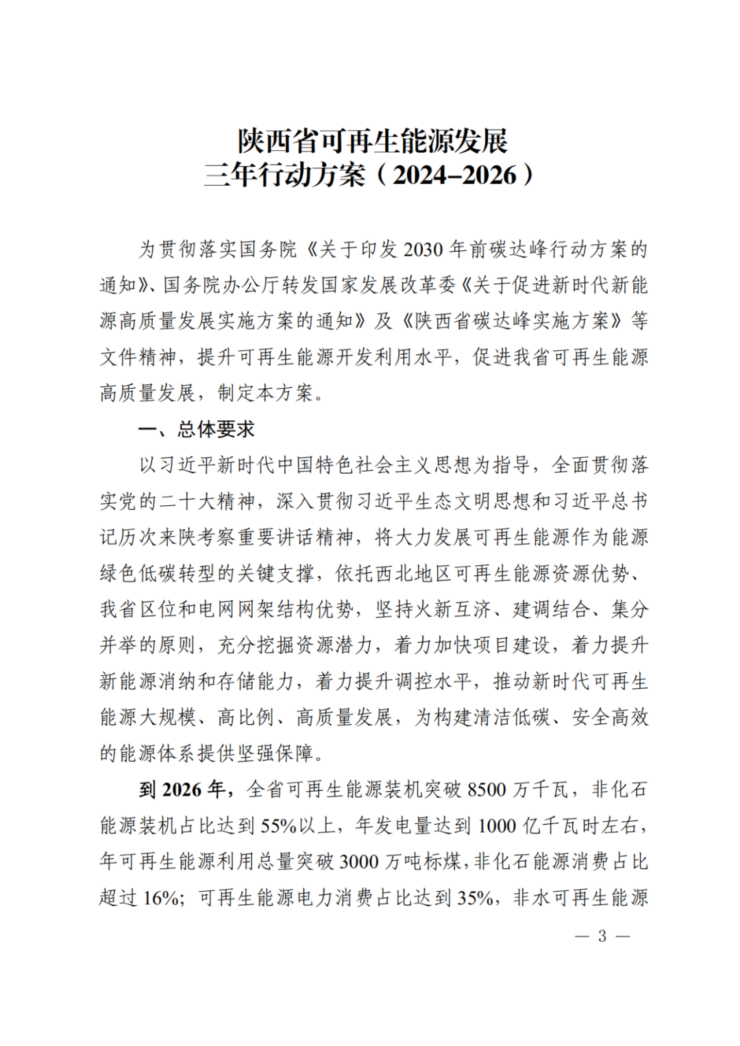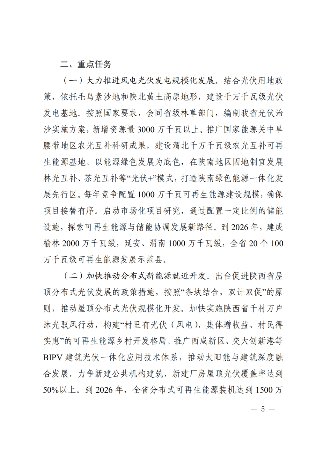 中國儲能網(wǎng)訊:日前,陜西省發(fā)改委印發(fā)《關(guān)于印發(fā)陜西省可再生能源發(fā)展三年行動方案(2024—2026)的通知》,初步規(guī)劃預(yù)計(jì)到2026年省內(nèi)新能源裝機(jī)規(guī)模達(dá)79GW,增速120.8%。