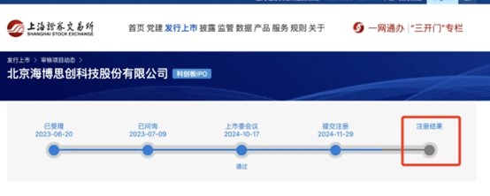 2023年6月,海博思創(chuàng)向科創(chuàng)板提交上市申請,7月9日進入問詢階段。2024年10月17日,上海證券交易所上市審核委員會審議并通過了海博思創(chuàng)的ipo申請,12月1日科創(chuàng)板IPO提交注冊,直至12月19日獲批同意。