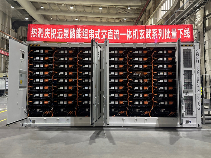 中國儲能網(wǎng)訊:近日,遠景儲能“交直一體”5.0/5.6MWh儲能系統(tǒng)系列新品在江陰工廠正式下線。遠景儲能“交直一體”系列擁有標準20尺集裝箱5MWh及5.6MWh兩款機型,其中5.6MWh產(chǎn)品是全球最大容量“交直一體”儲能系統(tǒng)。遠景5.0/ 5.6MWh儲能新品下線,意味著遠景儲能“交直一體”系列產(chǎn)品正式具備批量化交付能力。