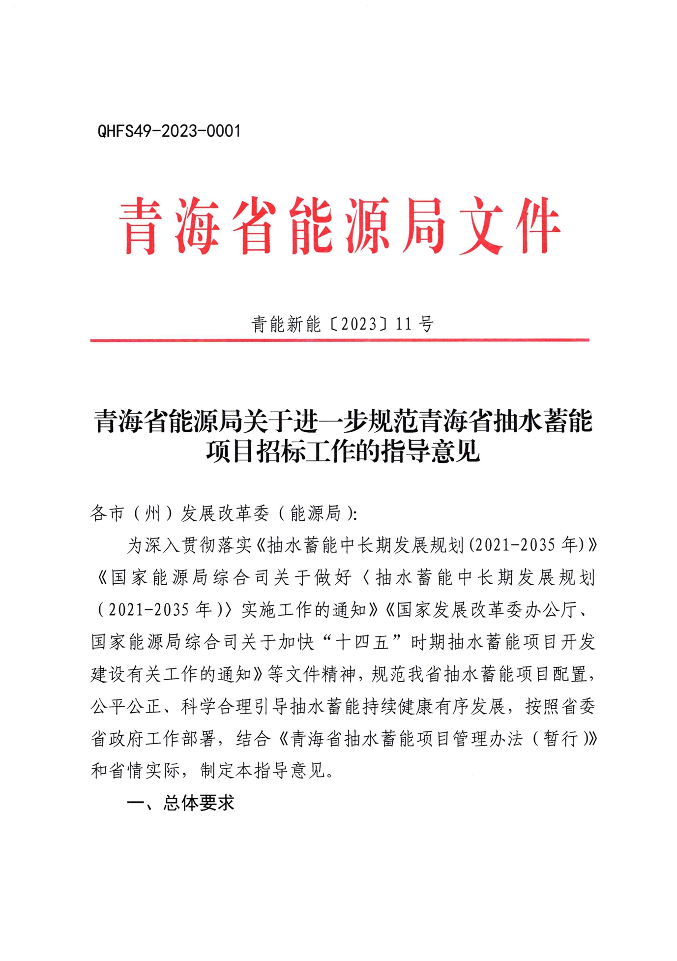 青海省能源局發(fā)布《關于進一步規(guī)范我省抽水蓄能項目招投標工作指導意見》