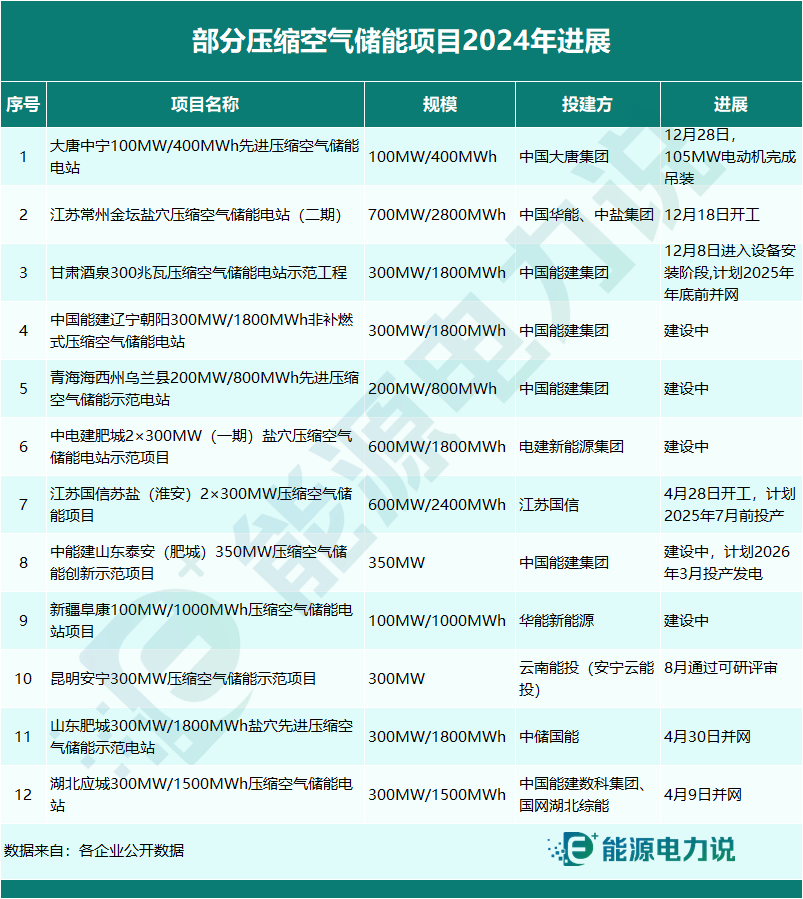2024年,已有超4GW壓縮空氣儲能項目并網(wǎng)、開工或正在加緊建設(shè)推進,發(fā)展勢頭迅猛。