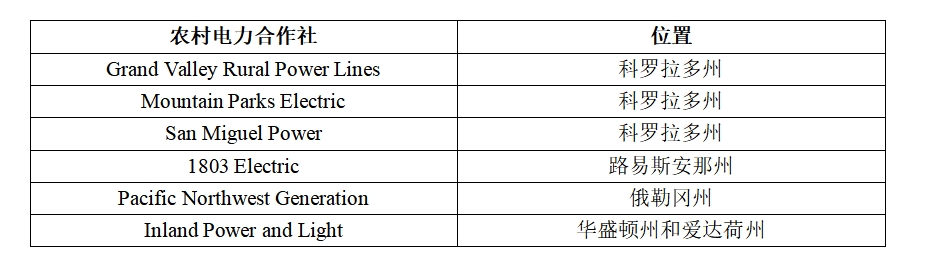 除了這10個(gè)農(nóng)村電力合作社之外,美國農(nóng)業(yè)部還選擇了6個(gè)農(nóng)村電力合作社繼續(xù)獲得《新農(nóng)業(yè)發(fā)展法案》的資助: