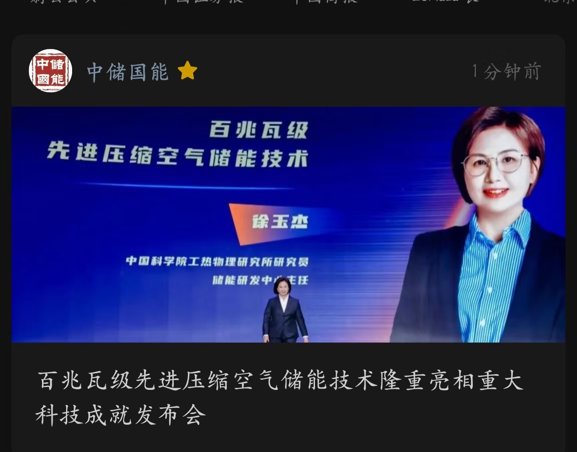中國儲能網(wǎng)訊:(1月8日,北京訊)上周,中國科學院工程熱物理研究所攜“百兆瓦級先進壓縮空氣儲能技術”,亮相國家科技傳播中心舉辦的“新紀天工 開物煥彩——新型儲能的時代”專場重大科技成就發(fā)布會。