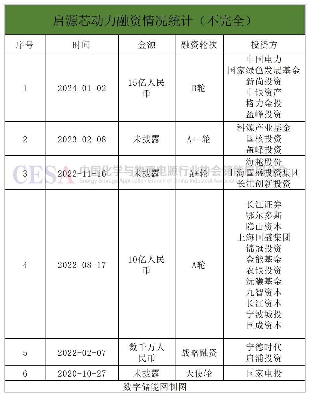 分別是,毅富能源科技(廣東)有限公司完成天使+輪融資、華致能源完成超億元A+輪融資、啟源芯動(dòng)力完成C輪融資、宿遷時(shí)代完成數(shù)億元A+輪融資。