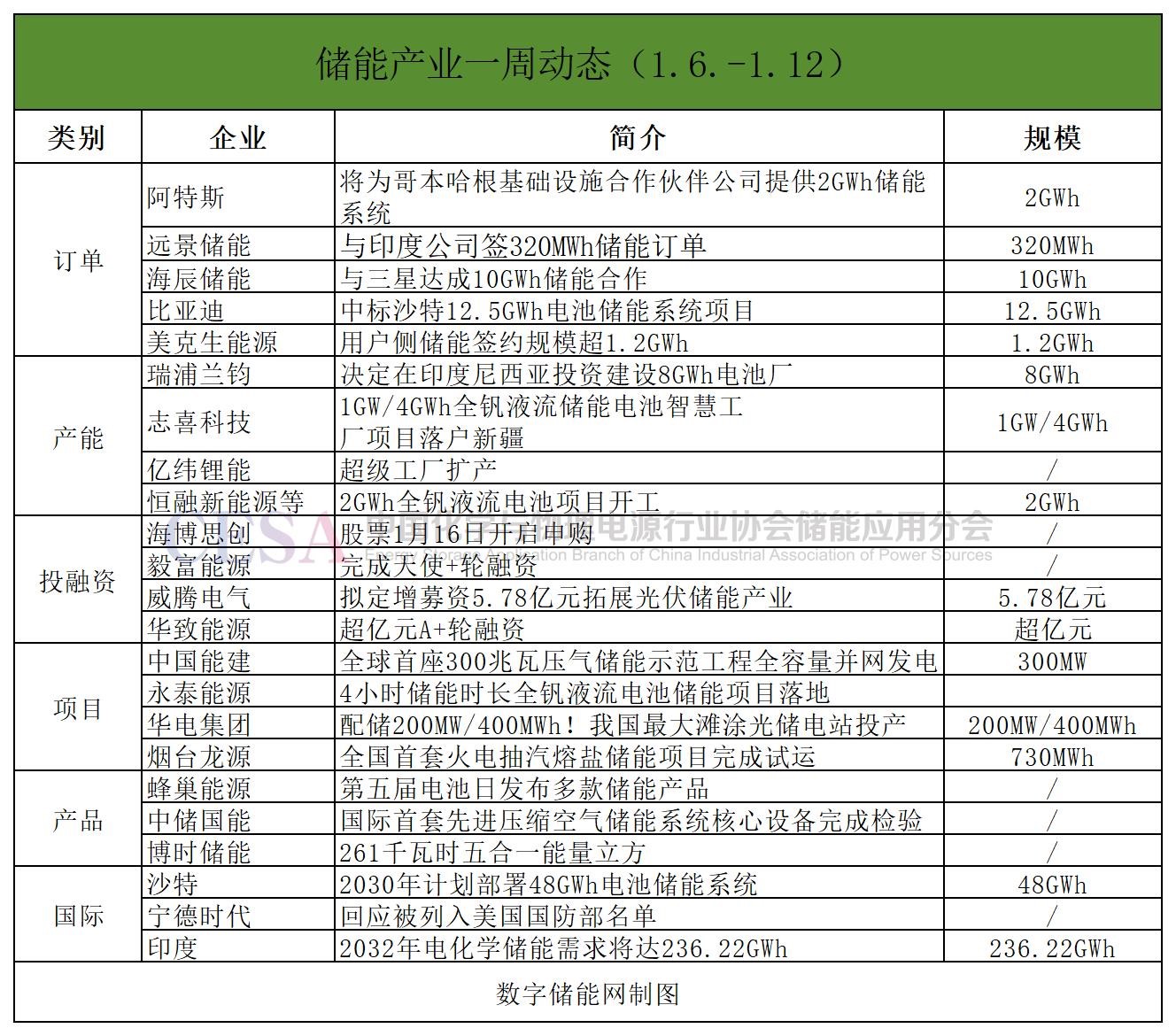 投融資方面,海博思創(chuàng)上市在即,1月16日開啟申購(gòu);全釩液流電池公司毅富能源完成天使+輪融資;華致能源完成超億元A+輪融資;威騰電氣擬定增募資5.78億元拓展光伏儲(chǔ)能產(chǎn)業(yè)。