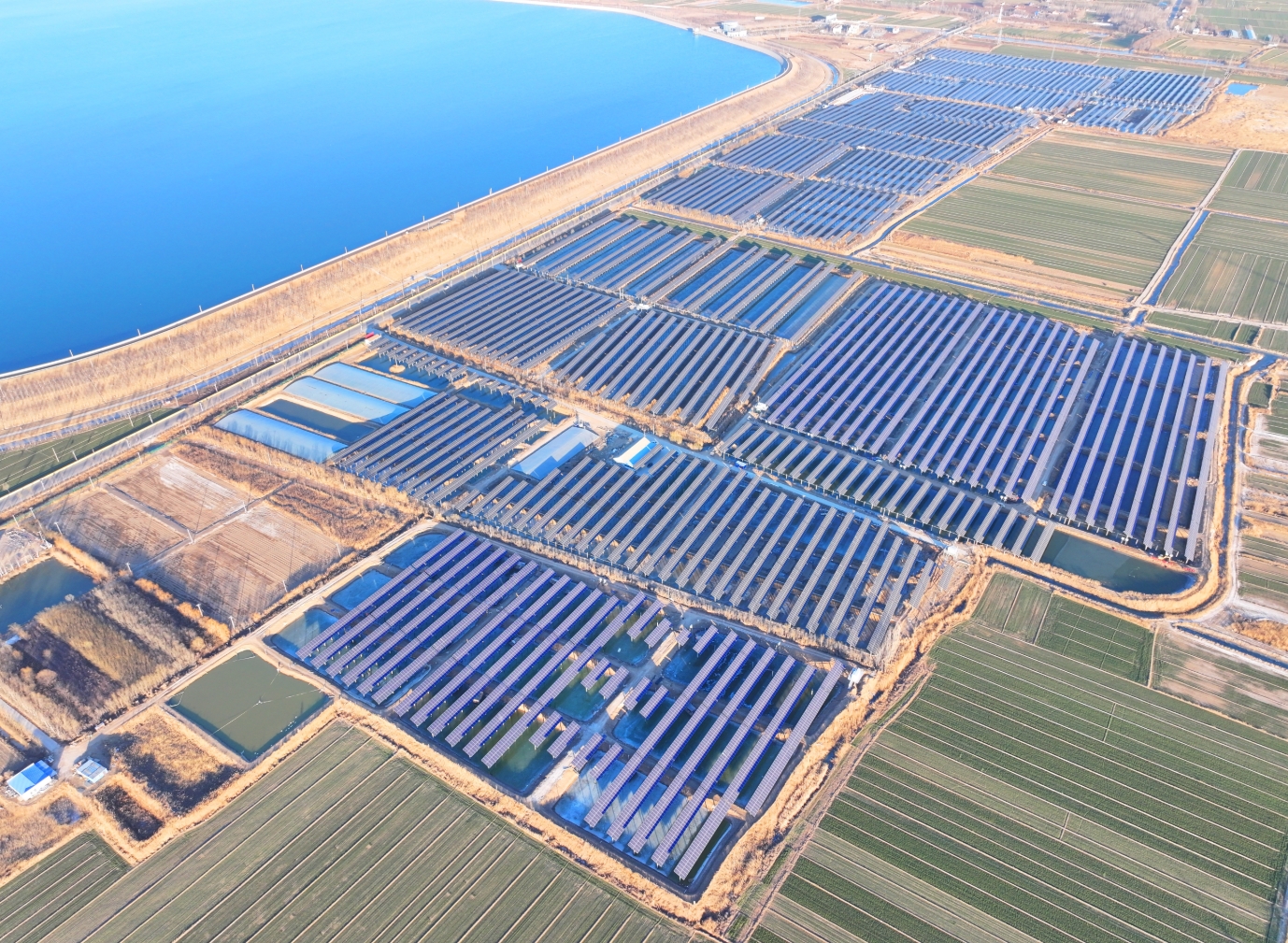 該項目位于山東省德州市武城縣,建設容量為130兆瓦,采用分塊發(fā)電并網(wǎng)方案,是武城縣首個漁光互補光伏項目。項目利用“光伏+儲能”模式,結合養(yǎng)殖業(yè)打造成為漁光互補的綜合性光伏電站,可同步實現(xiàn)水上發(fā)電、水下養(yǎng)殖。